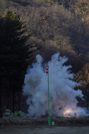 | ↑↑ 드론 소화탄 투하 시연(산림청 제공) |