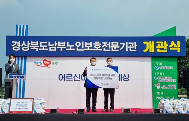 또한, 위탁운영 기쁨의복지재단(사회복지법인)에서 경산시에 사랑의 쌀10kg 100포(3,500천원상당)을 기탁하여 읍면동 어려운 독거 어르신들에게 전달하여 훈훈한 이웃사랑을 실천하였다