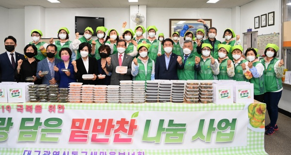 이번 행사는 동구 새마을 부녀회원들이 소불고기, 열무물김치, 어묵볶음, 멸치마늘종볶음, 짜장 등 정성껏 만든 총 5종류의 밑반찬을 포장해, 코로나19의 장기화로 어려움을 겪고 있는 관내 취약계층 260세대를 방문, 전달하며 안부를 묻고 마음을 나눴다.
