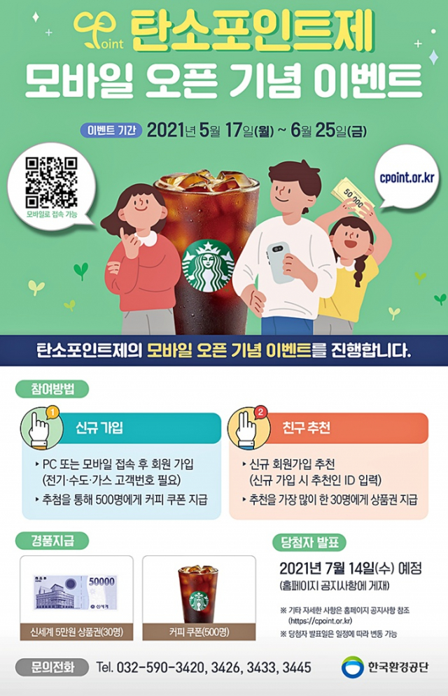 아울러, 군민들의 동참을 유도하기 홈페이지, SNS, 읍면 전광판 등을 통해 탄소포인트제 가입을 집중 홍보할 계획이며, 특히 올해는 탄소포인트제 모바일 오픈을 기념해 한국환경공단에서는 신규가입자 이벤트를 오는 6월 25일까지 진행한다.