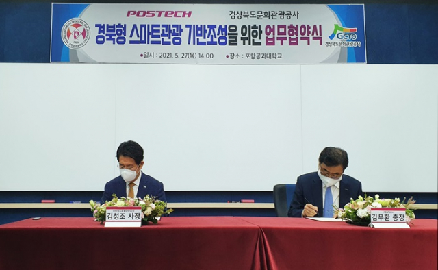 경상북도문화관광공사(이하 공사)와 포항공과대학교(이하, 포항공대)는 5월 27일 포항공대 혼합현실(MR) 강의실에서 경북형 스마트관광 기반 조성 및 지역 활성화를 위한 업무협약을 체결했다고 밝혔다.
