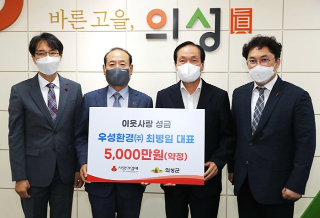 의성군(군수 김주수)은 지난 5월 25일, ㈜우성환경 최병일 대표가 고향 발전을 위해 5천만원을 의성군에 기부 약정했다고 밝혔다.