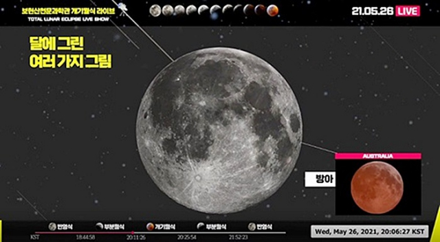 개기월식 중계영상은 보현산별빛축제 유튜브에서 다시 보기를 할 수 있다.