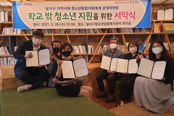 대구 달서구(구청장 이태훈)는 지역사회 청소년통합지원체계 운영위원회가 지난 26일 달서구청소년상담복지센터에서 학교 밖 청소년 연계 및 맞춤형 지원 활성화를 위한 서약식을 진행했다고 밝혔다.