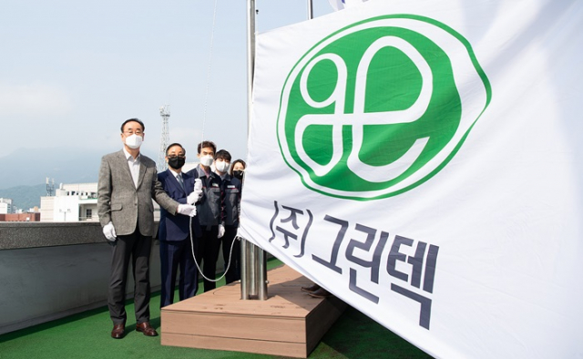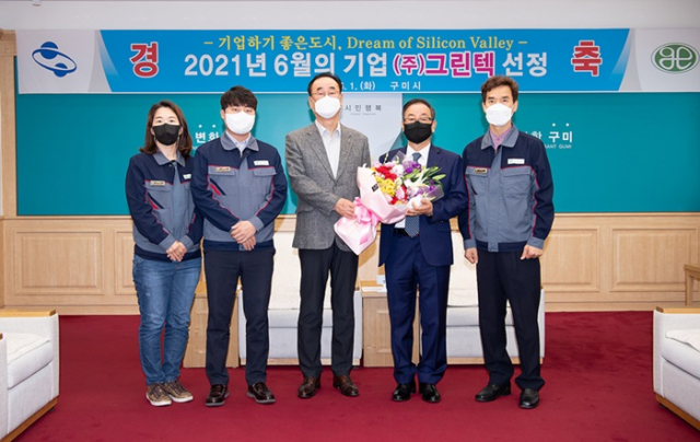 구미시(시장 장세용)는 6월1일(화) 오전 9시 시청 게양대에서 (주)그린텍(대표 이정곤) 대표 및 임직원과 시청직원이 참석한 가운데 이달의 기업 회사기 게양식을 가졌다.