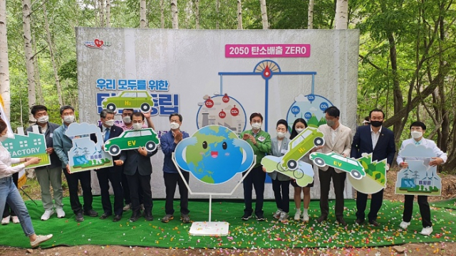 특히, 학생, 주민, 기업체 등 각계각층 도민대표 4인은 탄소중립 실천을 다짐하는 2050 탄소중립 실천을 선언하였으며, 퍼포먼스를 통해 이철우 도지사를 비롯한 주요 내빈들은‘우리 모두를 위한 탄소중립!’을 외치며 지구모형을 회전시키면서 병든 지구를 살려내는 메시지를 전달하였다.