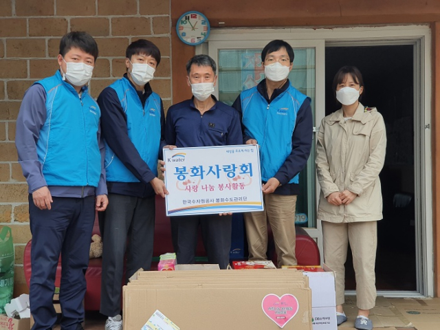 이번 봉사활동은 복지센터 아동의 방과후 교육에 필요한 책상, 문구류 등을 지원하는 행사로 진행되었으며, 물품비용의 재원은 수자원공사 봉화수도관리단 직원들의 급여 일부를 자발적으로 모아 조성된 기금으로 사용되었다.