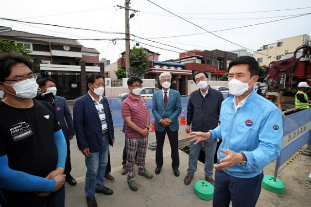 이강덕 포항시장이 지난 6월 2일 상대동 양학천 준설 및 오수관로 정비사업 현장 점검에 나섰다.