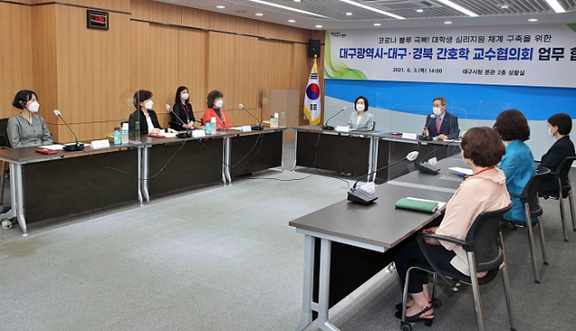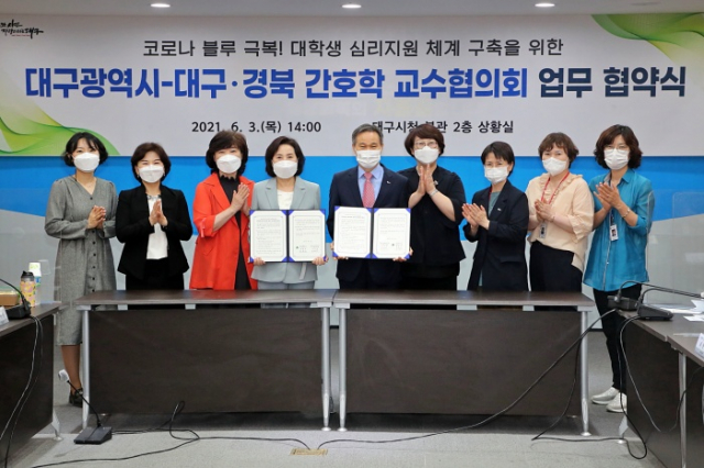 대구시는 6월 3일(목) 오후 2시 대구시청 2층 상황실에서 대구·경북 간호학 교수협의회와 함께 ‘대학생 코로나 블루 극복, 심리지원’을 위한 업무협약을 체결했다.