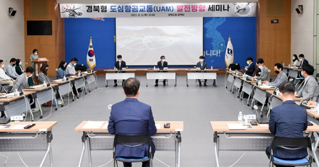 도는 6월 3일 도청 화백당에서 국토교통부, 한국공항공사, 한화시스템(주), 관련 기업 등이 참석한 가운데‘경북형 도심항공교통(UAM) 발전방향 세미나’를 개최했다.