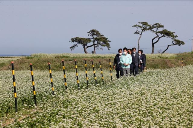 이강덕 포항시장이 6월 4일 남구 호미곶면 대보리 일원의 ‘메밀꽃 단지’를 방문해 현장을 점검하고 관계자를 격려했다.