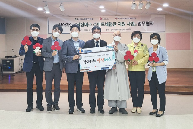 경주시장애인종합복지관(관장 유병윤)과 한국수력원자력㈜(사장 정재훈), 경북사회복지공동모금회(회장 전우헌)는 지난 7일 ‘상상버스 스마트 체험관’ 운영을 위한 업무 협약을 체결했다.