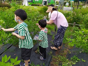 230㎡ 규모의 동궁원 체험장에는 다로우, 블루크롭, 스파르탄, 엘리오트, 스타 등 다양한 품종의 블루베리 나무 150여 주가 있다. 블루베리 나무는 높이가 낮아 아이들도 열매를 딸 수 있어 온 가족이 함께 즐길 수 있다. 특히 올해는 결실을 빨리 맺어 새콤달콤한 블루베리를 일찍 만나볼 수 있게 됐다.