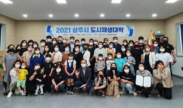 상주시 도시재생지원센터(센터장 백기영)는 6월 9일 오후 4시 상주시 도시재생대학 수료식을 열었다. 도시재생대학은 5월 6일부터 6월 9일까지 6주간 운영되었으며, 87명의 상주 시민과 지도교수가 각 13개 팀을 이루어 진행되었다.