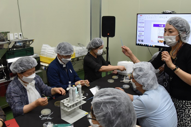경북도민행복대학 안동캠퍼스 13차시 강의가 지난 8일 오후 안동시 남선면 ㈜니껴바이오(대표 김영배) 낫또 공장에서 열렸다. 이번 강의는 낫또 제조시설 견학과 순두부 만들기, 미생물 배양체험, 그리고 콩나물 키우기 키트체험 등으로 진행됐다.