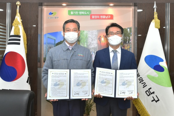 대구광역시 남구청(구청장 조재구)에서는 지난 10일, ㈜ KT 대구고객본부 달서지사(지사장 이차형)와 스마트 경로당 구축·운영 지원을 내용으로 하는 ❛명품남구 스마트 경로당 만들기 사업❜ 업무협약을 체결하였다.