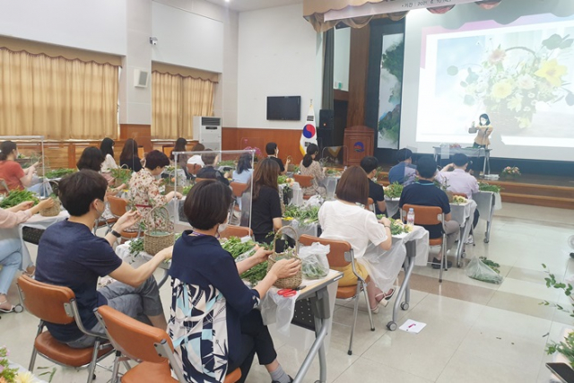 교육생들은 효율적인 스트레스 관리방안과 긍정적이고 적극적인 마인드 갖기, 꽃바구니 실습을 통한 자존감 향상 등 다양한 주제의 교육을 통해 직무스트레스를 해소할 수 있는 시간을 가졌다.