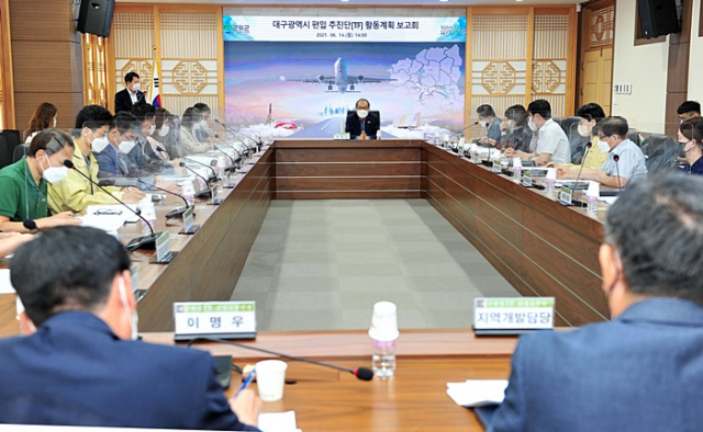군위군은 대구시 편입에 따른 선제적이고 체계적인 지역발전 전략을 마련하고 편입 추진에 박차를 가하기 위해 지난 5월 31일 『대구광역시 편입 추진단(TF)』을 발족하고 6월 14일 첫 회의를 시작으로 TF를 가동하기로 했다.
