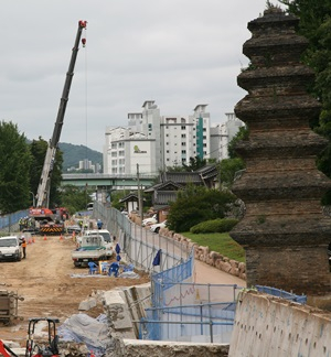 올해 1월부터 시작된 임청각 주변 정비가 막바지에 다다르며 레일, 자갈, 방음벽 철거에 이어 문화재 조사를 거쳐 현재 토공 철거가 한창 진행 중이다.