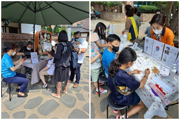 | ↑↑ 중구 「근대로의 여행 비대면 걷기대회」에서 체험을 하고 있다. |