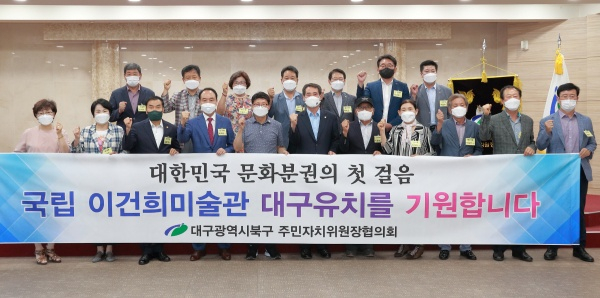 대구 북구 주민자치위원장협의회(회장 최혁준)는 6월 21일(월) 회의를 통해 대구시가 추진하고 있는‘국립 이건희미술관’ 대구 유치에 적극 동참하기로 하였다.