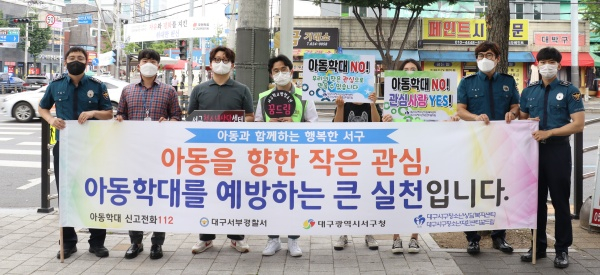 서구청소년청소년상담복지센터·서구학교밖청소년지원센터꿈드림(센터장 신민호)는 지난 24일 비산네거리-경상여중 일대에서 아동학대 예방 캠페인을 실시했다.