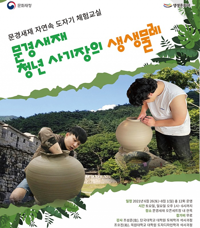 문경 국가무형문화재전수관이 오는 6월 26일(토)부터 문화재청 생생문화재 사업으로‘문경새재 자연 속 도자기 체험교실’을 32회 운영한다.