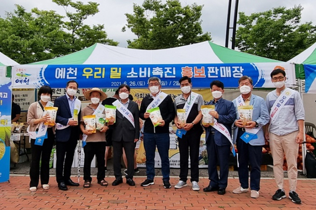 예천군은 지난 6월 26일 서울올림픽공원 만남의 광장에서 국산 밀 소비 확대와 우수성 홍보를 위해 김학동 예천군수, 윤태진 재경군민회장, 출향인 10여명 등이 참여한 가운데 ‘예천 우리 밀 소비촉진 홍보 판매 행사’를 가졌다.