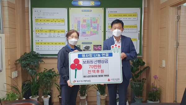 노갑선(평리4동 지역사회보장협의체) 위원장은 지난 23일 코로나로 어려움을 겪고 있는 취약계층을 돕기 위해 보화상 상금 70만 원을 평리4동 행정복지센터에 전달했다.