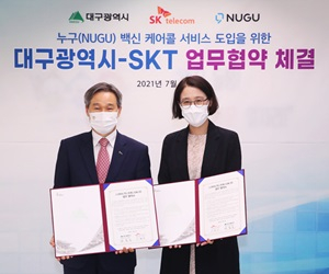 대구시 코로나19 예방접종 시행 추진단(단장 채홍호 대구시 행정부시장)은 7월 1일(목) 오후 3시 대구시 사회서비스원 회의실에서 SK텔레콤과 코로나19 예방접종 후 인공지능 전화 안내 서비스(누구 백신 케어콜) 업무협약을 체결했다.