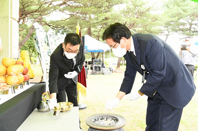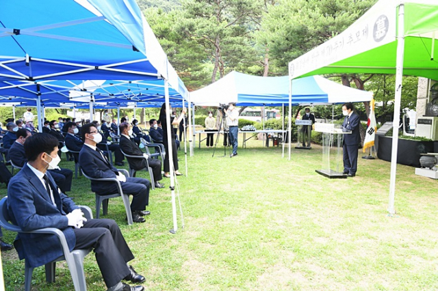 문경출신 호국영웅 故 김용배 장군 70주기 추모제가 7월 2일(금) 문경읍 소재 용배공원에서 엄숙하게 거행됐다. 문경시재향군인회(회장 남시욱) 주관으로 개최된 이날 행사에는 고윤환 문경시장을 비롯하여 코로나-19 지역사회 감염예방을 위하여 보훈단체장 및 안보단체장 등 참석인원을 최소화하여 숭고한 희생을 하신 장군의 충정과 애국혼을 기렸다.
