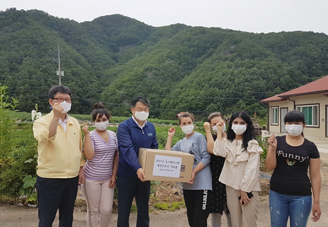 NH농협 영양군지부(지부장 윤석우)는 2021년 7월 5일 외국인 계절근로자가 배치되어 있는 영양군 소재 농가를 방문하여 외국인 근로자들에게 식자재로 구성된 위문품을 전달하였다.