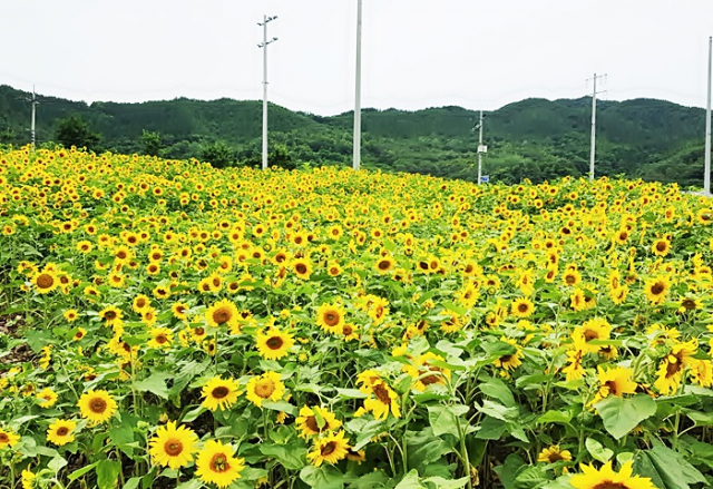 영양군 청기면(면장 박경해)에서 노인일자리사업 환경개선 및 문화재주변 경관사업의 일환으로 관내 18개리 유휴지 및 검산성 일대에 식재한 해바라기의 개화가 시작되었다.