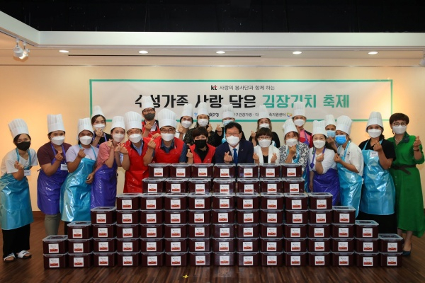 이날 행사는 KT대구·경북광역본부 ‘사랑의 봉사단’의 후원금 300만 원을 기탁 받아 추진하게 됐다. 입국초기 다문화가정이 직접 겉절이와 물김치를 담아 취약계층 100가구에 전달했다.