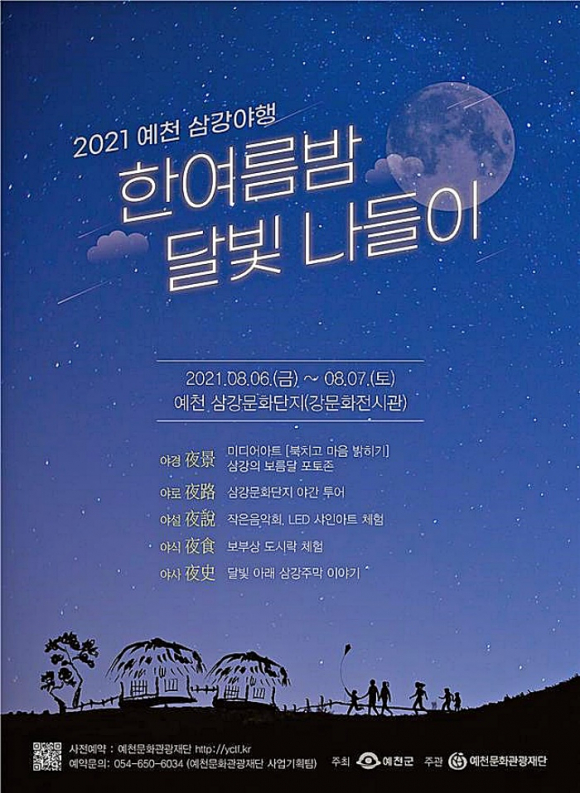 (재)예천문화관광재단(이사장 김학동)이 8월 6일부터 7일까지 오후 5시부터 삼강문화단지 일원에서 야간 관광프로그램인 ‘2021 삼강야행’을 개최한다. 삼강야행은 삼강주막과 인근 삼강문화단지에서 올해 처음 개최되는 행사로 다양한 콘텐츠를 전통 마을과 접목시켜 야간 관광의 새로운 모델로 거듭날 예정이다.
