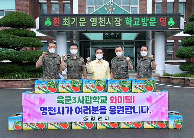 영천시(시장 최기문)는 지난 8일 초복(初伏)을 맞아 육군3사관학교를 비롯한 군부대, 경찰서, 소방서를 방문해 위문품(수박)을 전달하고, 현장 관계자들을 응원했다.