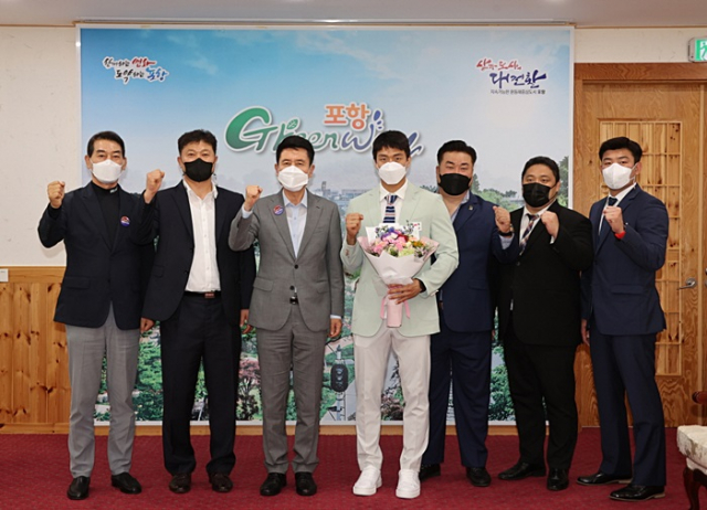 이강덕 포항시장은 7월 9일 시청 대외협력실에서 도쿄올림픽에 출전하는 유도 국가대표 곽동한(포항시청) 선수를 만나 격려했다. 곽동한 선수는 포항시청 직장운동경기부 유도팀 소속으로 포항의 유도 명문고 동지고를 졸업한 포항 출신이다.