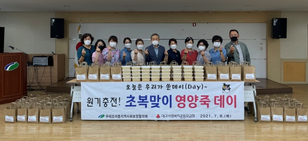 북구 무태조야동 지역사회보장협의체(공동위원장 장상희·이희정)는 7월 8일(목) 동 특화사업으로 관내 독거 어르신들의 건강한 여름나기를 위한 「원기충전! 초복맞이 영양죽 데이(Day)」나눔행사를 실시했다.