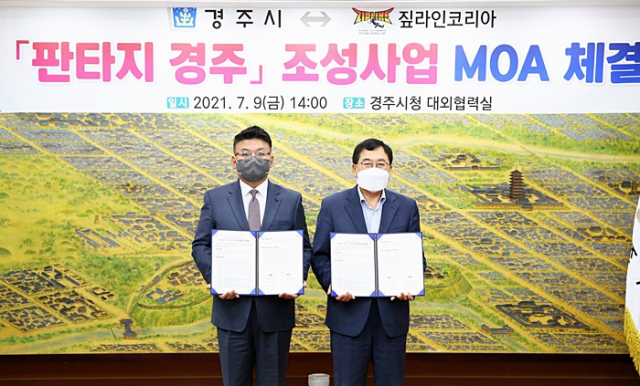 경주시는 지난 9일 시청 대외협력실에서 주낙영 경주시장과 짚라인코리아㈜ 정원규 대표, 시의원 등이 참석한 가운데 150억원(전액 민간투자) 규모의 ‘판타지 경주 조성사업’ MOA(업무합의)를 체결했다.