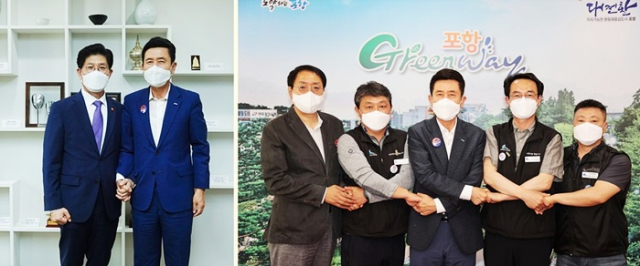 | ↑↑ 6.28 노형국 국토교통부장관과 이강덕포항시장, 전국철도노조와 포항시장 |