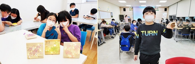 지난 7월 9일(금) 수업에서는 신성리 공룡발자국을 주제로 1억 년 전 청송의 자연 환경과 당시 살았던 공룡들의 종류와 행동특성, 발자국이 남겨진 이유, 기후변화로 인한 공룡의 갑작스런 멸종 과정을 알아보았으며, 특히 실을 이용한 공룡 모형 만들기, 친환경 비누 만들기, 손부채 만들기 등 다양한 체험활동을 하며 지구환경을 보존하기 위한 다양한 방법에 대해 생각해 보는 시간도 가졌다.