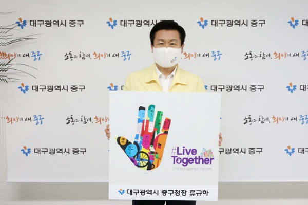 | ↑↑ 류규하 중구청장은 인종차별, 혐오범죄에 반대하는 '리브투게더 캠페인'에 동참했다. |