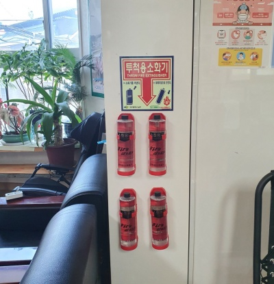 이번에 설치한 투척형 소화기는 화재가 발생한 장소에 바로 던져 불을 끄는 소화기로 기존 소화기에 비하여 가볍고 사용이 간편하다.