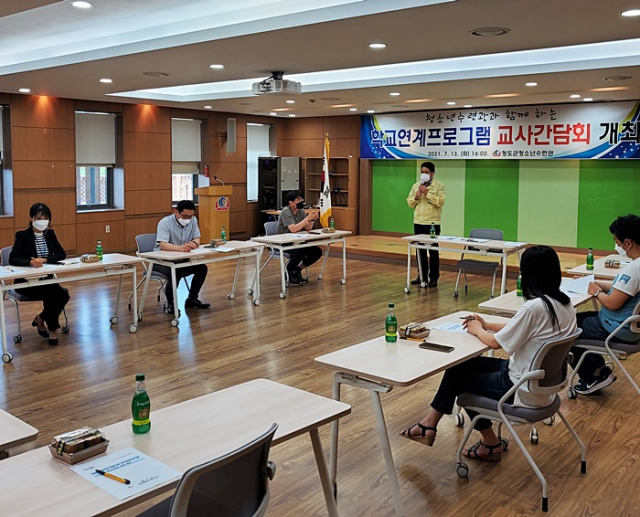 청도군(군수 이승율)은 지난 13일 청소년수련관에서 하반기 학교연계프로그램 운영을 위해 청소년프로그램 운영관련 담당 교사 10여명이 참석한 가운데 ‘2021 학교연계프로그램 교사간담회’를 개최했다.