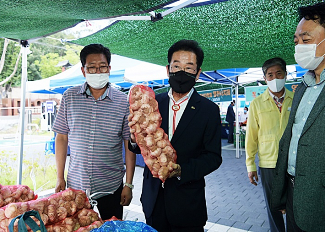 영천시(시장 최기문)는 7월 15일 농특산물 판로 확대와 직거래 활성화를 위한 목요 직거래장터 개장 행사를 영천한의마을 주차장에서 개최했다.
