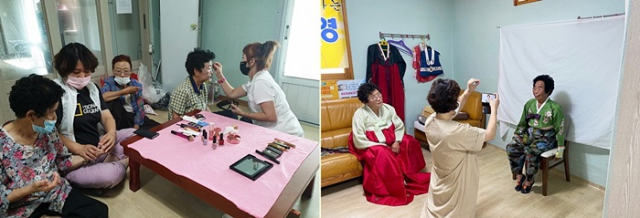 | ↑↑ 경로당 어르신들의 화장과 머리 손질, 장수 사진을 직접 촬영 |