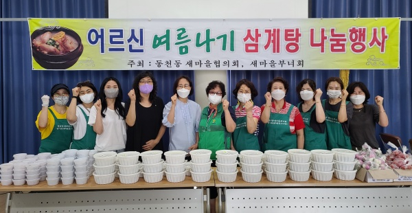 송미숙 동천동장은 “오늘 행사를 위해 물심양면으로 도와준 새마을 부녀회장님과 회원들게 진심으로 감사드린다.”며, “어르신들이 본격적인 무더위에 기력이 떨어지지 않도록 영양이 가득한 삼계탕을 드시고 무더운 여름 몸 건강히 잘 보내셨으면 좋겠다.”고 말했다.