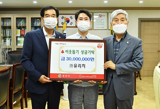㈜유리치(대표이사 김재식)에서 7월 19일 경산시청을 방문하여 코로나-19로 인하여 어려움을 겪고 있는 이웃을 위해 써달라며 성금 3,000만 원을 기탁했다.