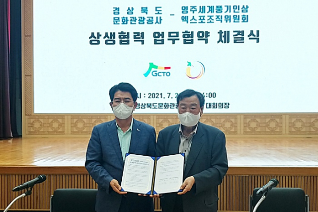 (재)영주세계풍기인삼엑스포조직위원회(위원장 이희범)는 20일 ‘2022영주세계풍기인삼엑스포’ 성공 개최와 상생협력을 위해 경상북도문화관광공사(사장 김성조)와 업무 협약을 체결했다.