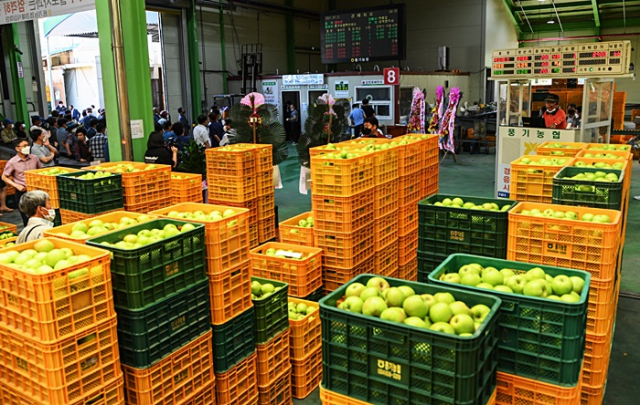 풍기농협은 21일 영주시 풍기농협백신지점에서 장욱현 영주시장과 농협 관계자, 생산자 등이 참석한 가운데 경매식집하장 개장식을 가졌다. 풍기농협은 이날 여름사과인 쓰가루(아오리) 경매를 시작으로 내년 상반기까지 경매식 집하장을 운영할 계획이다.